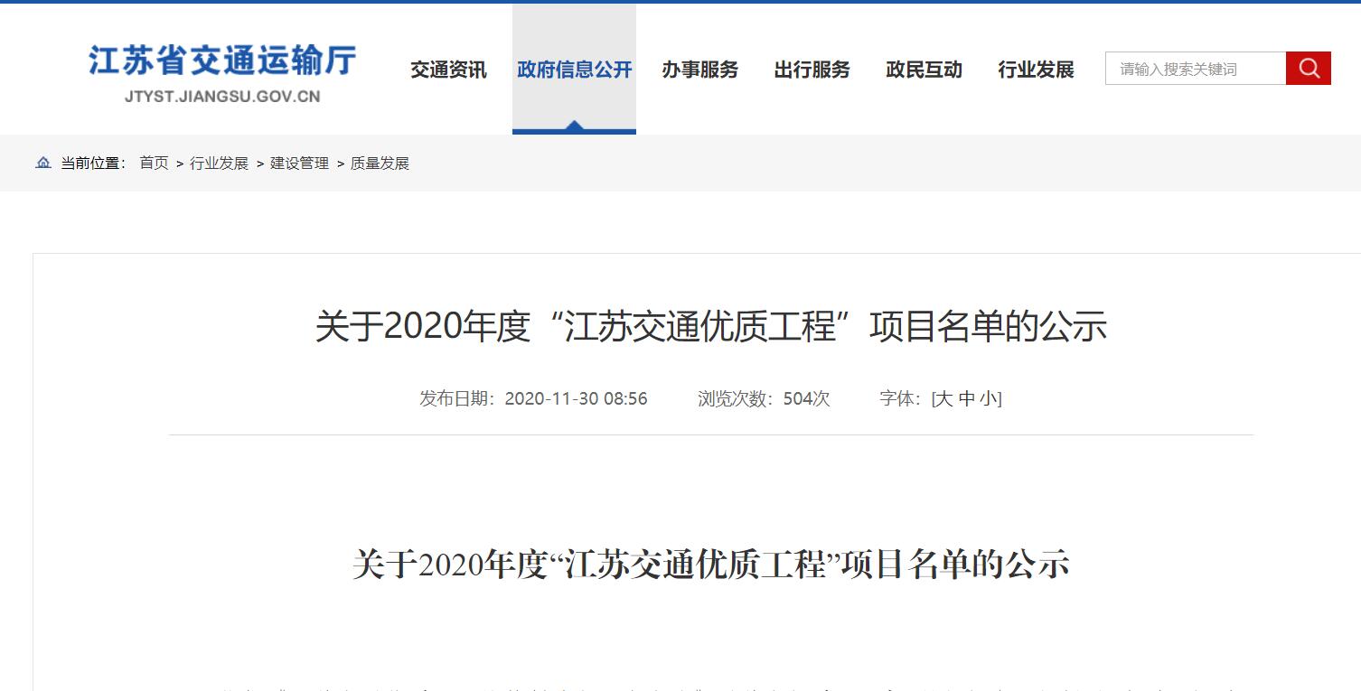 依据《江苏交通优质工程挂牌创建与评审办法》(苏交规〔2018〕3号)规定,江苏省交通运输厅评定10个工程项目为2020年度“江苏交通优质工程”,我完美online(中国)监理项目348省道楚州车桥至洪泽县城段工程洪泽南环段工程位列其中。